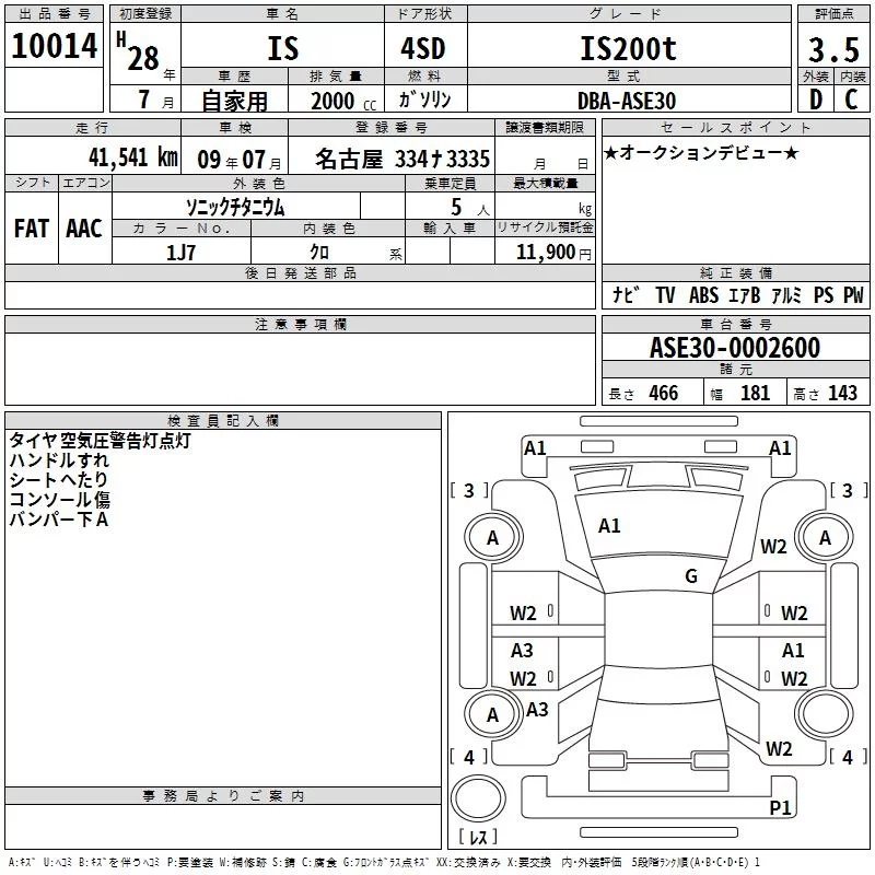 Lexus IS с аукциона Японии TAA Chubu лот № 10014