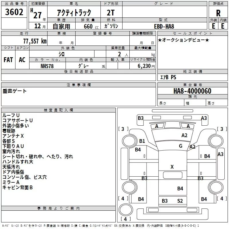 Honda ACTY TRUCK с аукциона Японии TAA Chubu лот № 3602