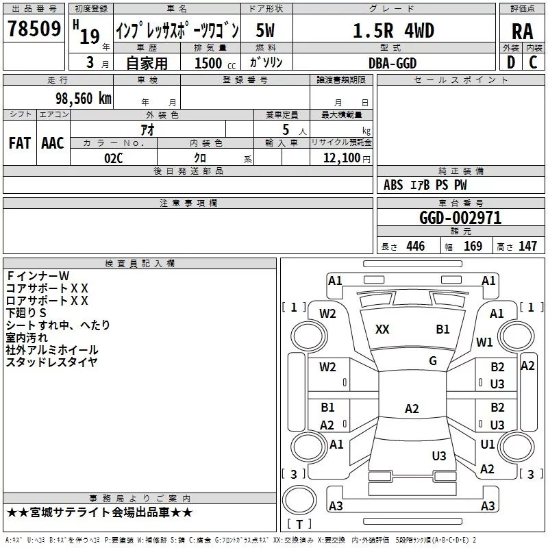 Subaru IMPREZA с аукциона Японии TAA Tohoku лот № 78509