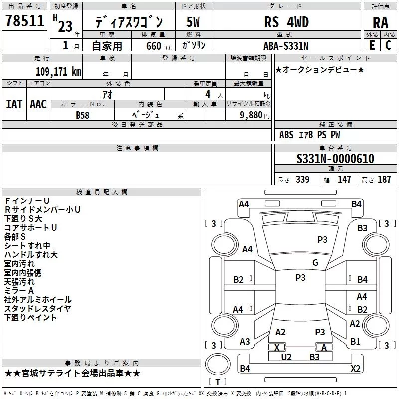 Subaru GOLF ALLTRACK с аукциона Японии TAA Tohoku лот № 78511