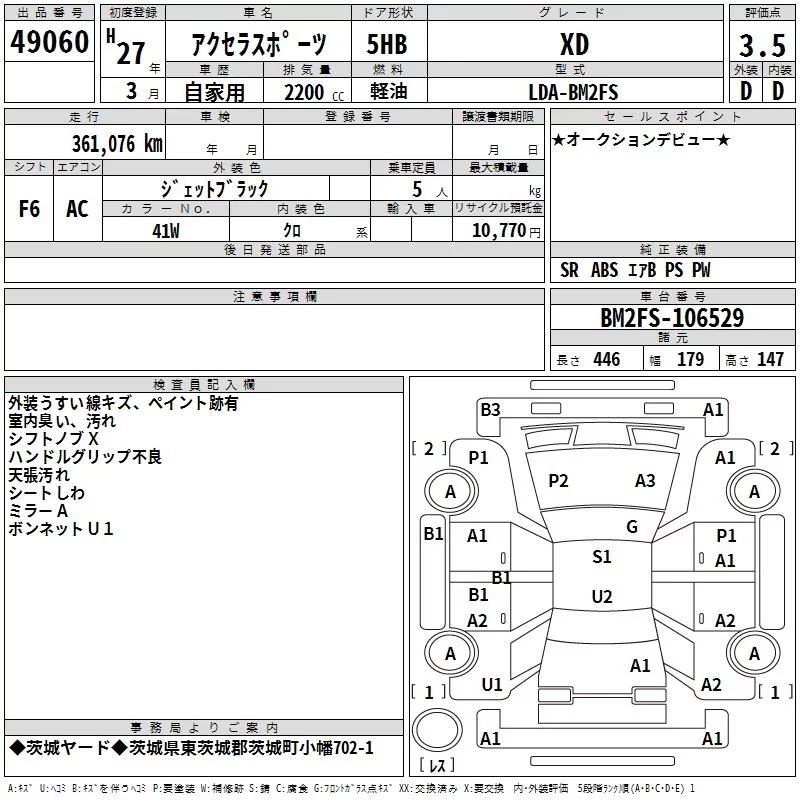 Mazda AXELA с аукциона Японии TAA Kanto лот № 49060