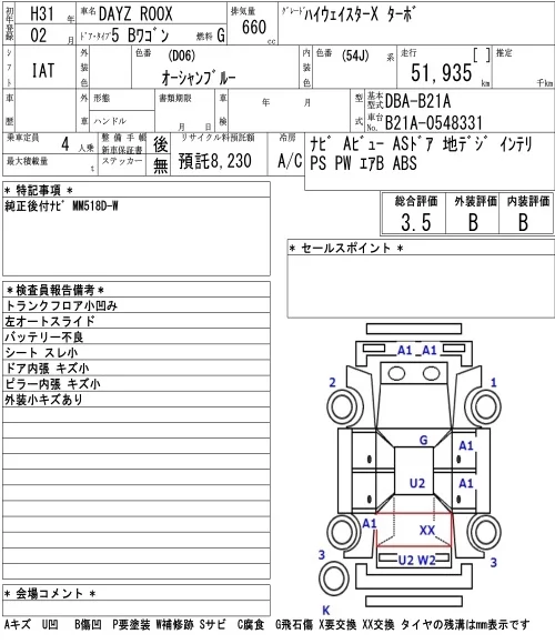 Nissan DAYZ ROOX с аукциона Японии NAA Osaka лот № 3066