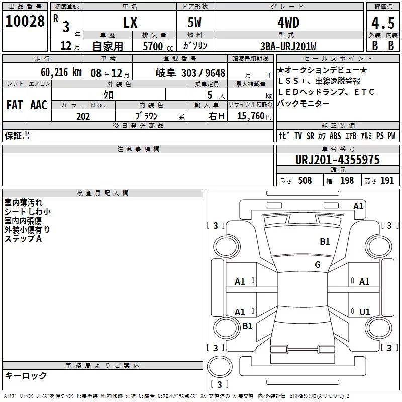 Lexus LX с аукциона Японии TAA Chubu лот № 10028