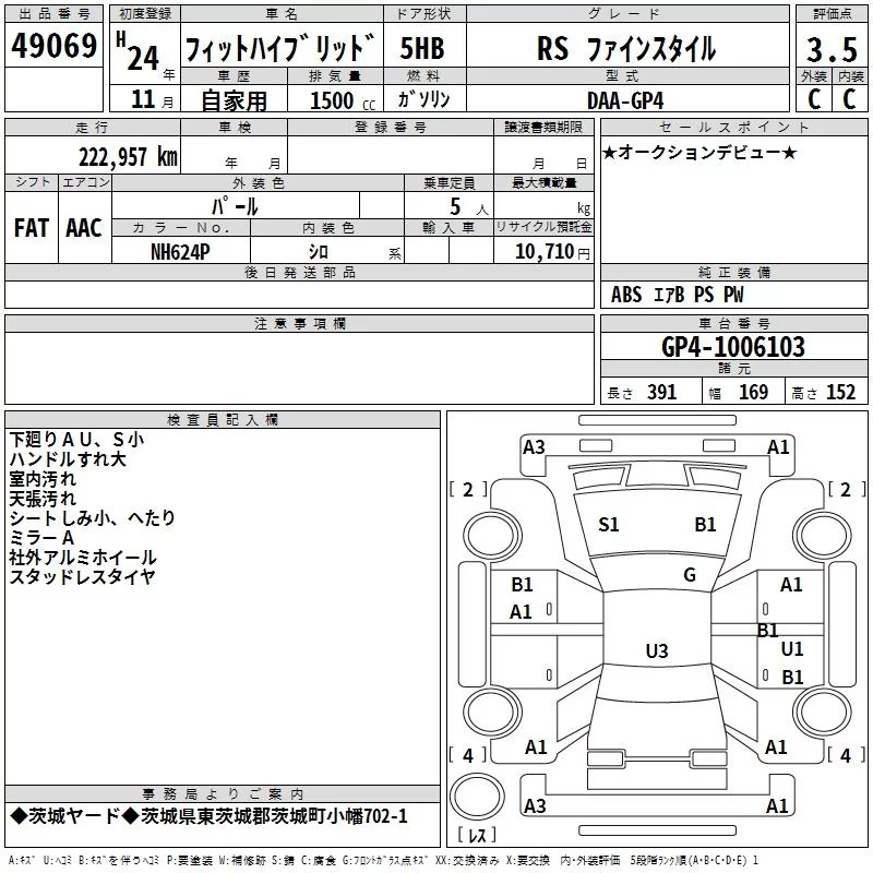 Honda FIT с аукциона Японии TAA Kanto лот № 49069