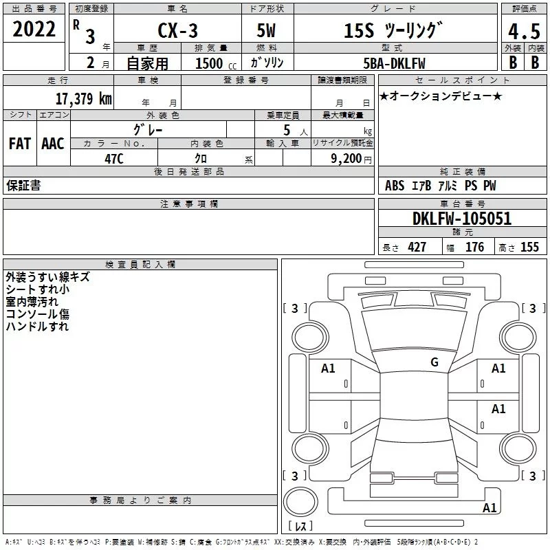 Mazda CX-3 с аукциона Японии TAA Chubu лот № 2022