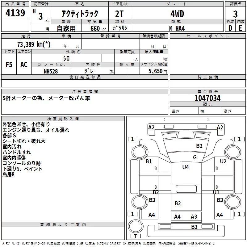 Honda ACTY TRUCK с аукциона Японии TAA Chubu лот № 4139