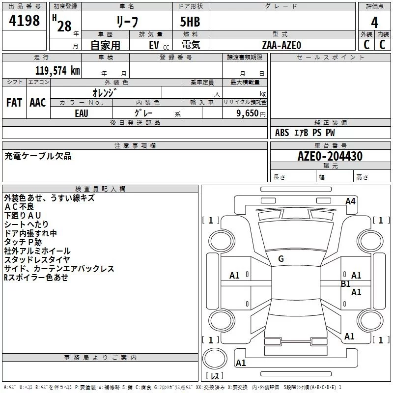 Nissan LEAF с аукциона Японии TAA Chubu лот № 4198