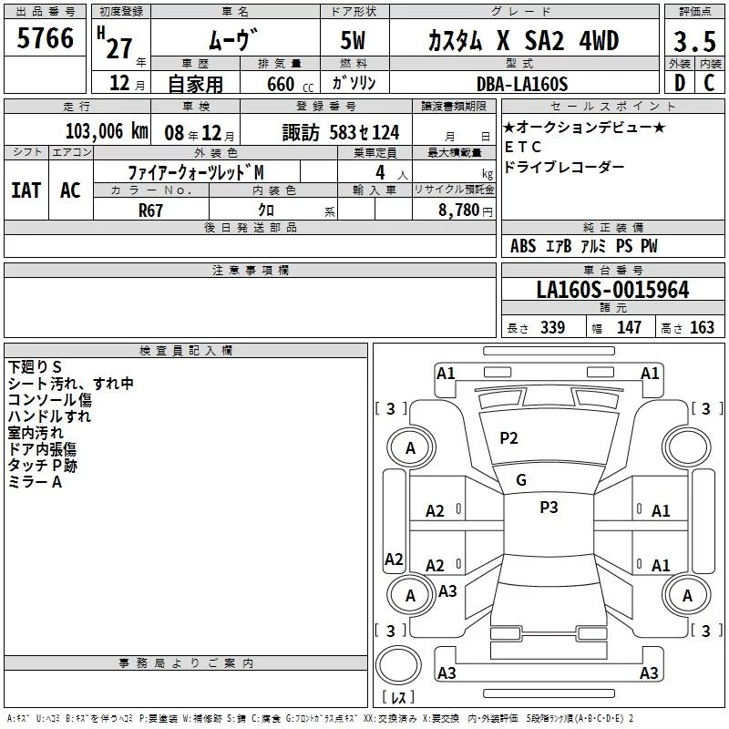 Daihatsu MOVE с аукциона Японии TAA Chubu лот № 5766