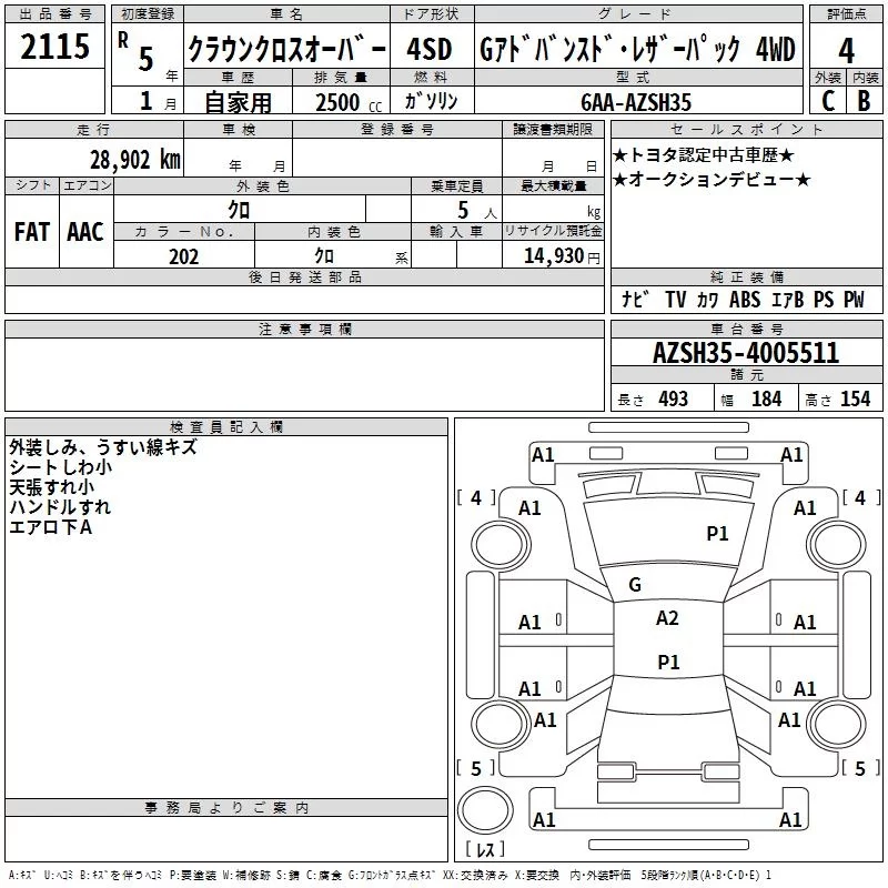 Toyota CROWN CROSSOVER с аукциона Японии TAA Chubu лот № 2115