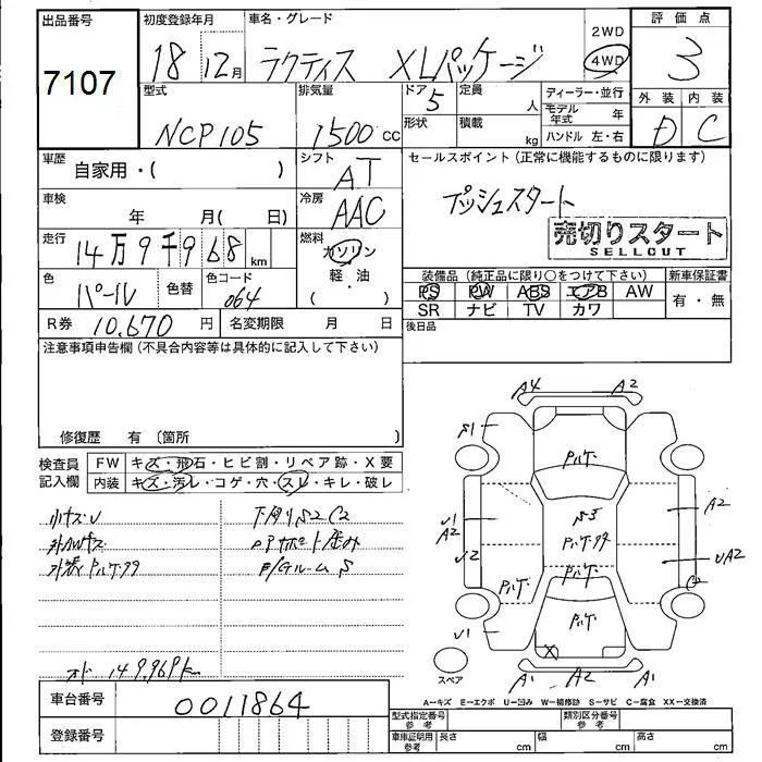Toyota RACTIS с аукциона Японии JU Fukushima лот № 7107
