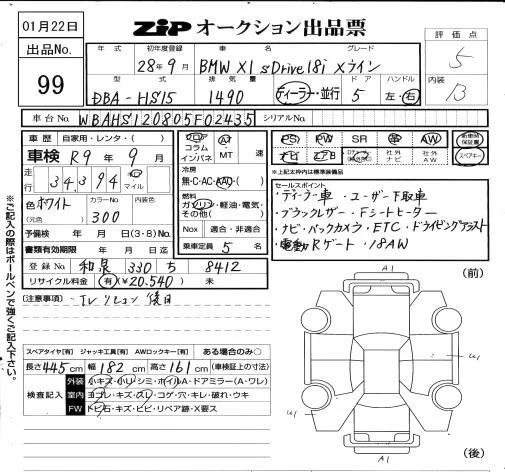 BMW X1 с аукциона Японии ZIP Osaka лот № 99