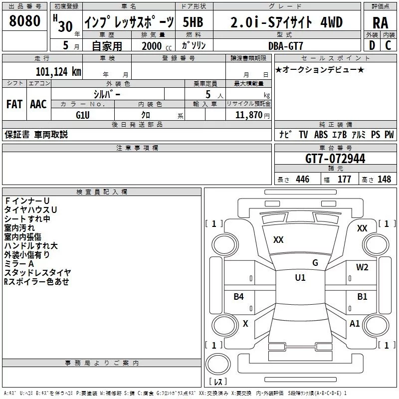 Subaru IMPREZA с аукциона Японии TAA Chubu лот № 8080