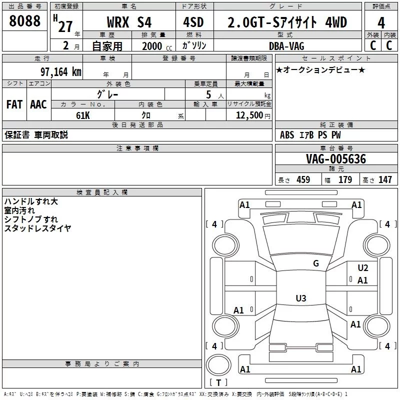 Subaru WRX с аукциона Японии TAA Chubu лот № 8088