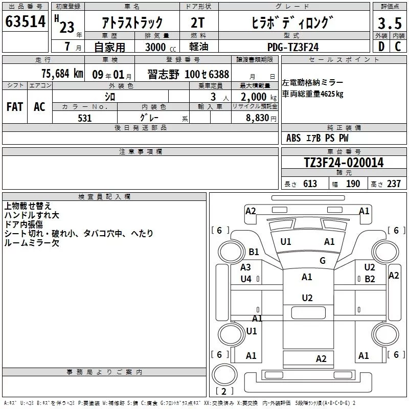 Nissan ATLAS с аукциона Японии TAA Kanto лот № 63514