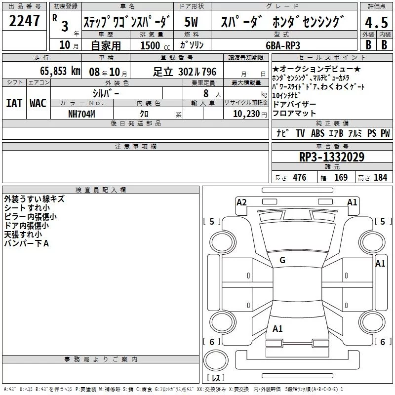 Honda STEP WAGON с аукциона Японии TAA Kanto лот № 2247
