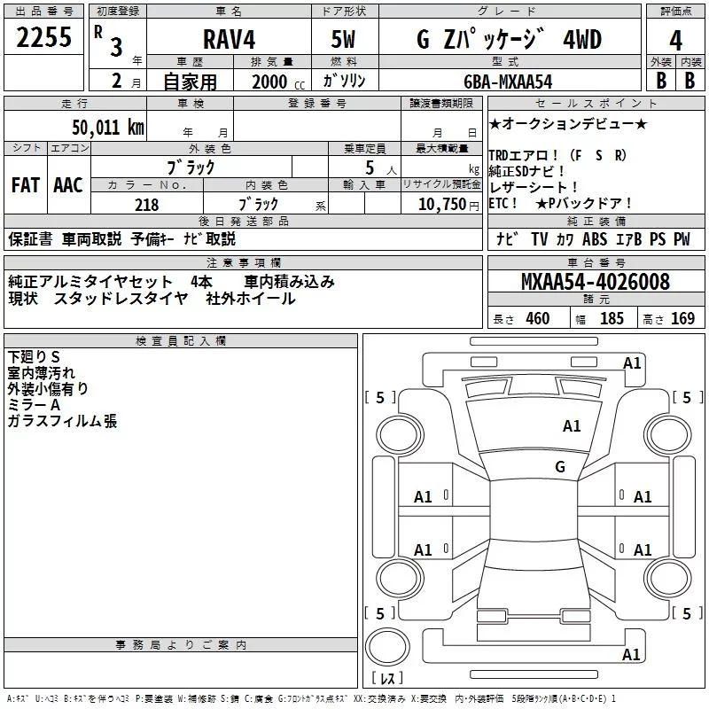 Toyota RAV4 с аукциона Японии TAA Kanto лот № 2255
