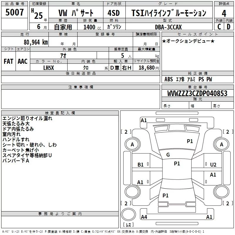 Volkswagen PASSAT с аукциона Японии TAA Chubu лот № 5007