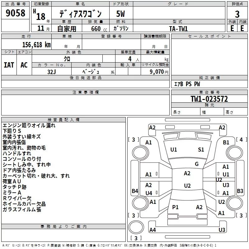Subaru GOLF ALLTRACK с аукциона Японии TAA Kanto лот № 9058
