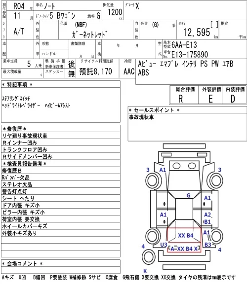 Nissan NOTE с аукциона Японии NAA Osaka лот № 8001