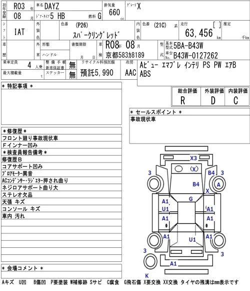 Nissan DAYZ с аукциона Японии NAA Osaka лот № 8008