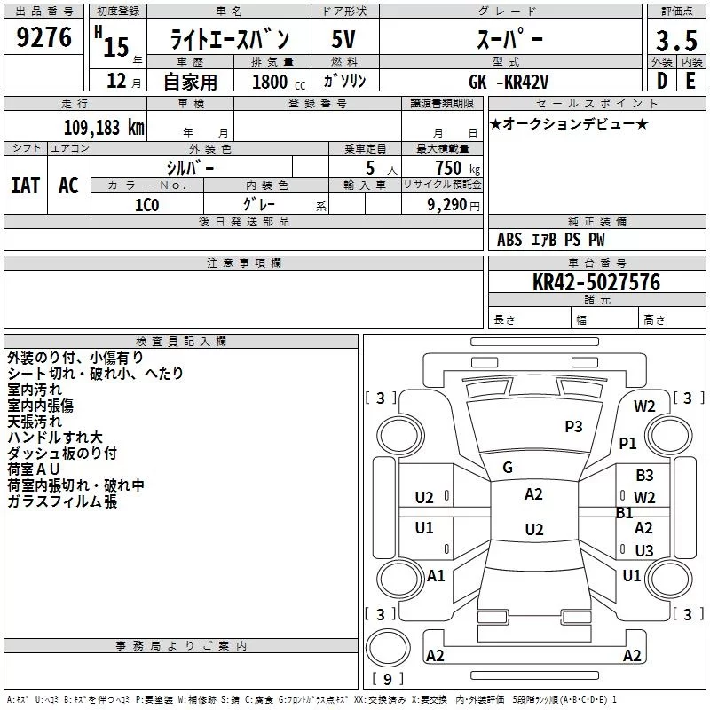 Toyota LITE ACE VAN с аукциона Японии TAA Kanto лот № 9276