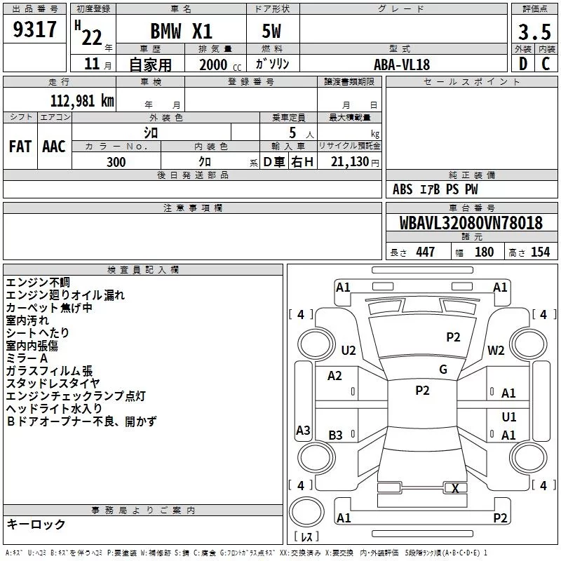 BMW X1 с аукциона Японии TAA Kanto лот № 9317