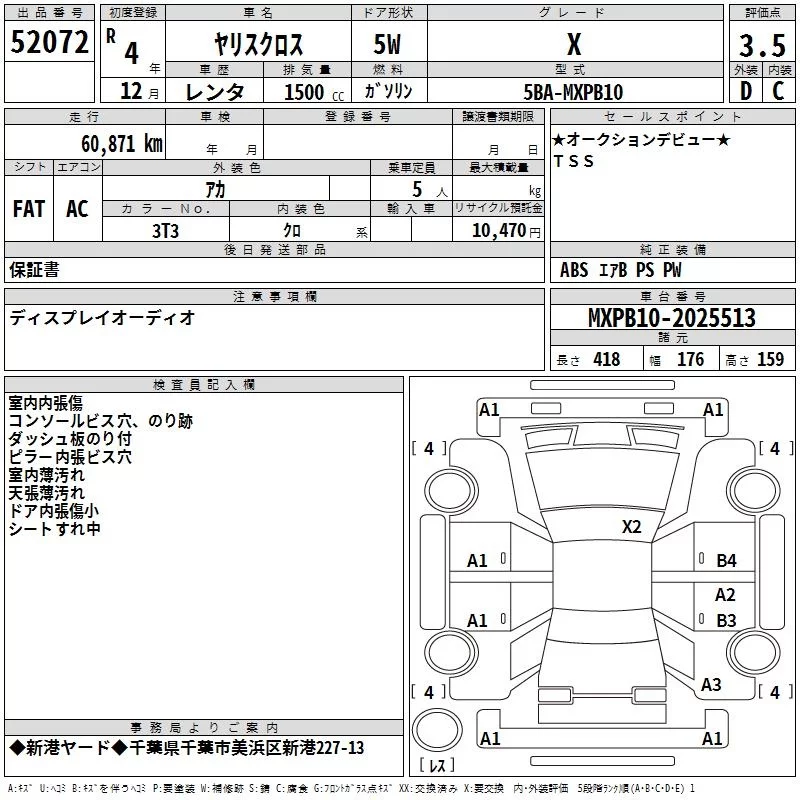 Toyota YARIS CROSS с аукциона Японии TAA Kanto лот № 52072