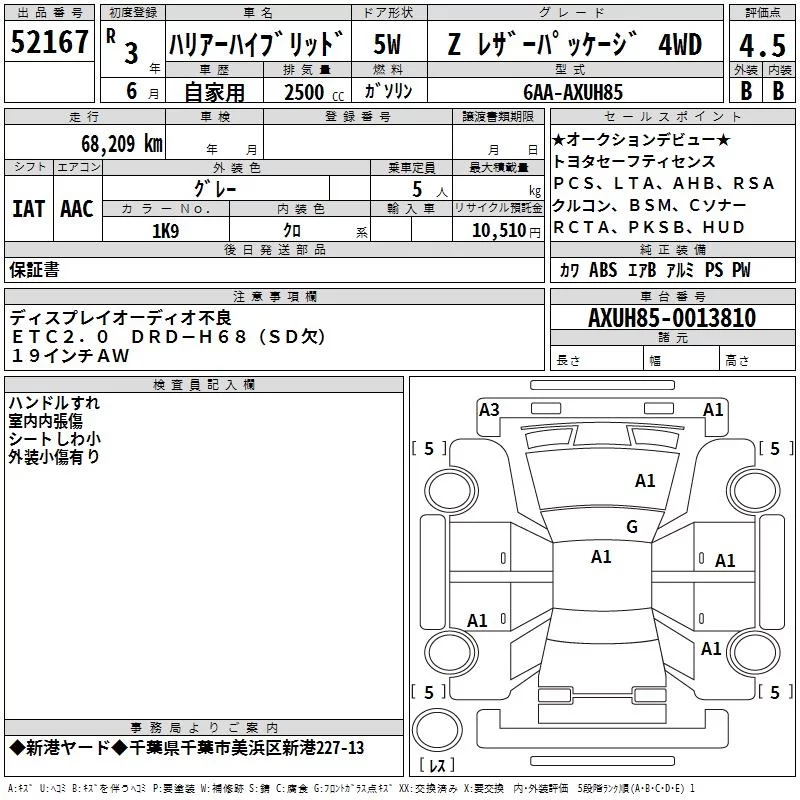 Toyota HARRIER с аукциона Японии TAA Kanto лот № 52167