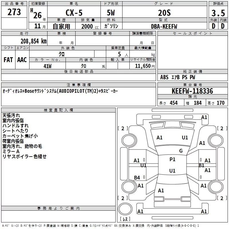 Mazda CX-5 с аукциона Японии TAA Kanto лот № 273