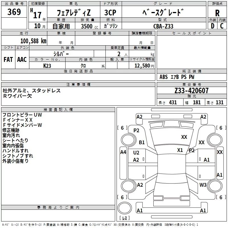 Nissan FAIRLADYZ с аукциона Японии TAA Kanto лот № 369