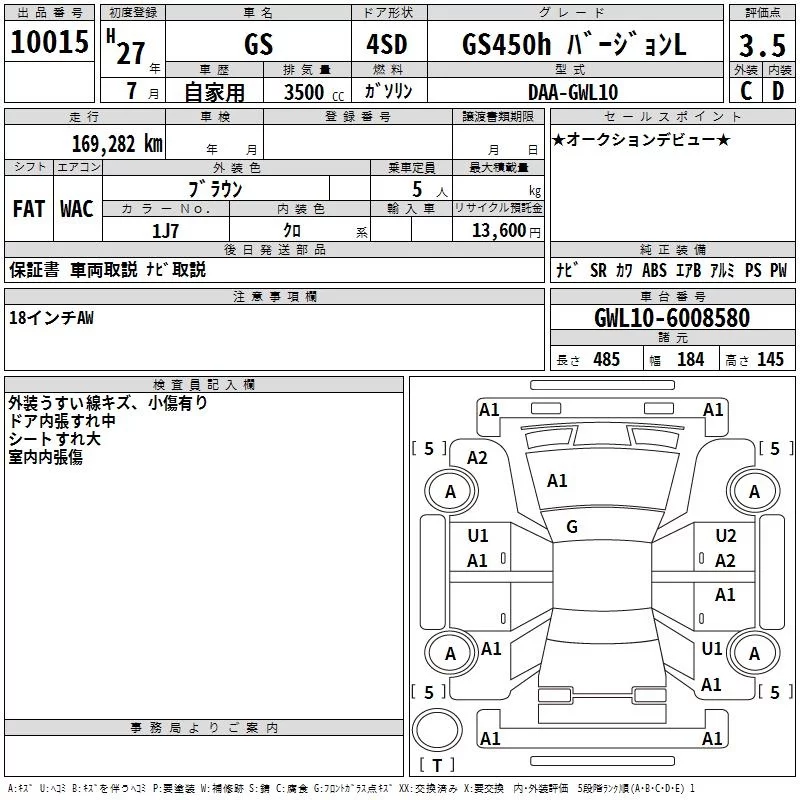 Lexus GS с аукциона Японии TAA Kanto лот № 10015