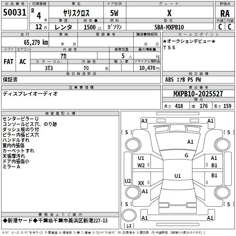 Toyota YARIS CROSS с аукциона Японии TAA Kanto лот № 50031