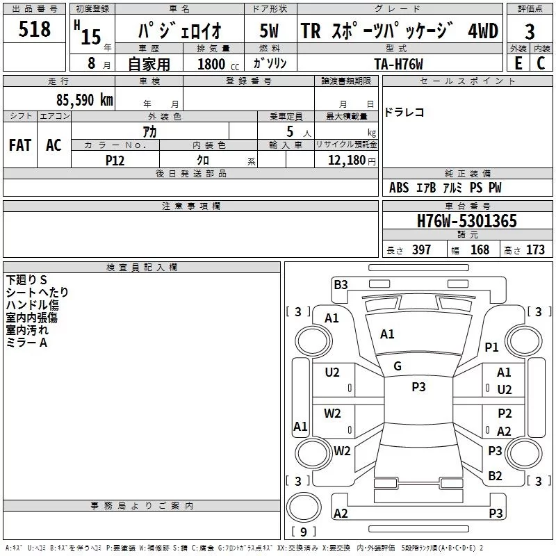 Mitsubishi PAJERO IO с аукциона Японии TAA Kanto лот № 518