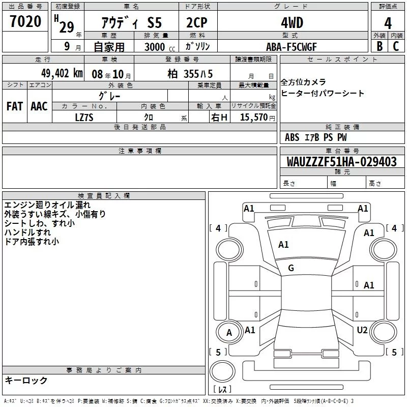 Audi S5 с аукциона Японии TAA Kanto лот № 7020