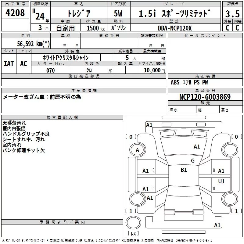 Subaru TREZIA с аукциона Японии TAA Kanto лот № 4208