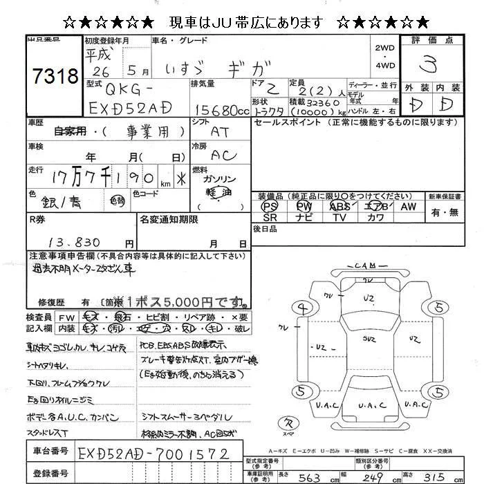 Isuzu GIGA с аукциона Японии JU Hokkaido лот № 7318