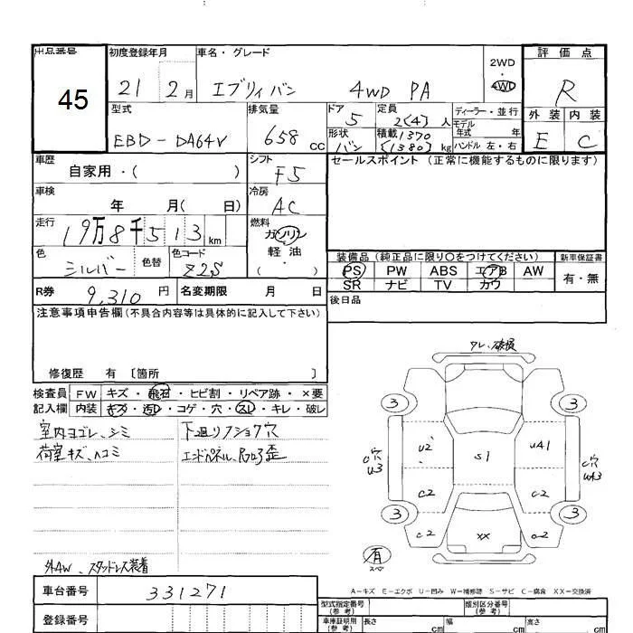 Suzuki EVERY с аукциона Японии JU Hokkaido лот № 45