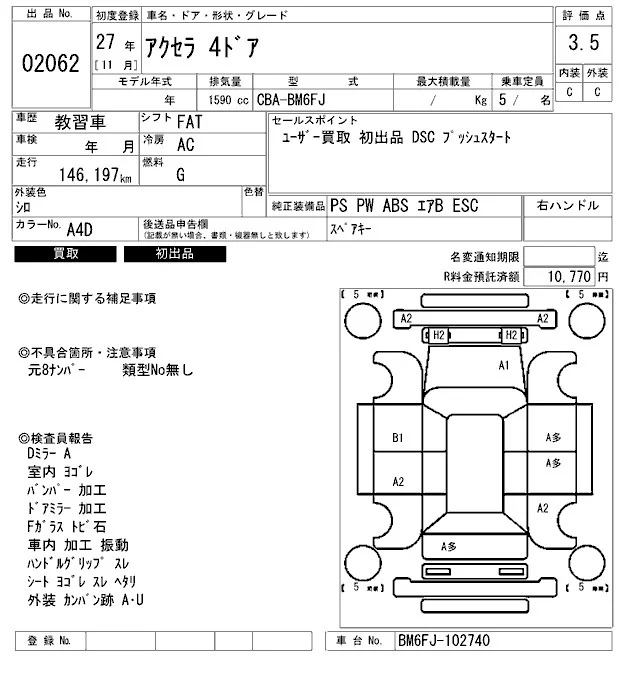 Mazda AXELA с аукциона Японии ARAI Bayside лот № 2062