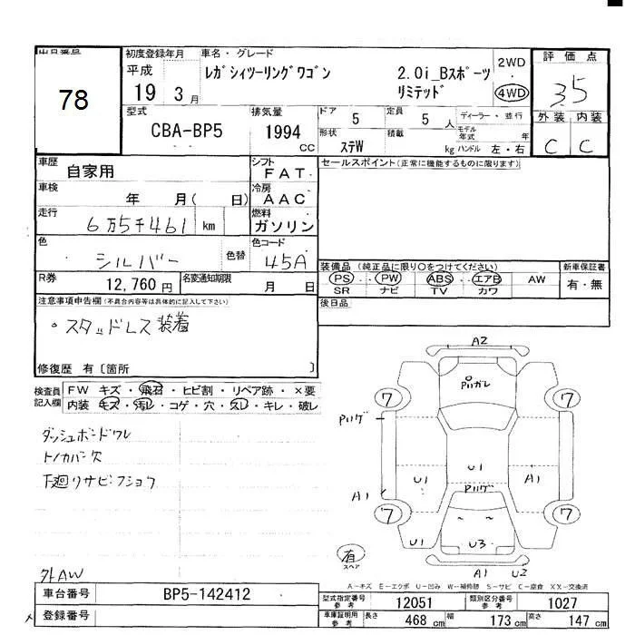 Subaru LEGACY с аукциона Японии JU Hokkaido лот № 78