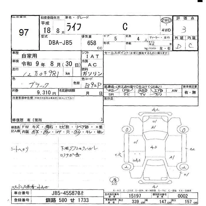 Honda LIFE с аукциона Японии JU Hokkaido лот № 97