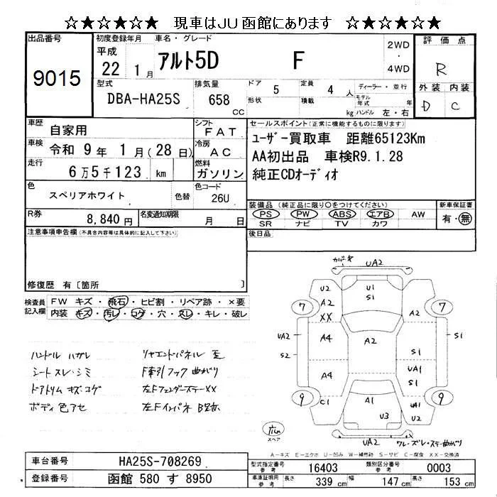 Suzuki ALTO с аукциона Японии JU Hokkaido лот № 9015