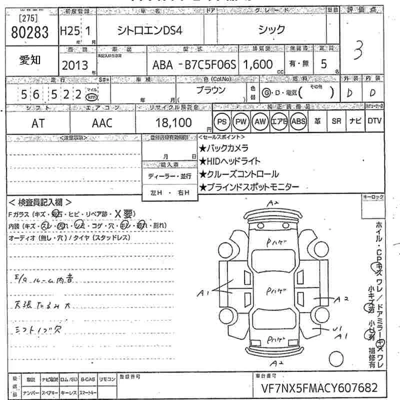 Citroen DS4 с аукциона Японии MIRIVE Aichi лот № 80283