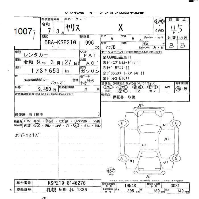 Toyota YARIS с аукциона Японии JU Hokkaido лот № 1007