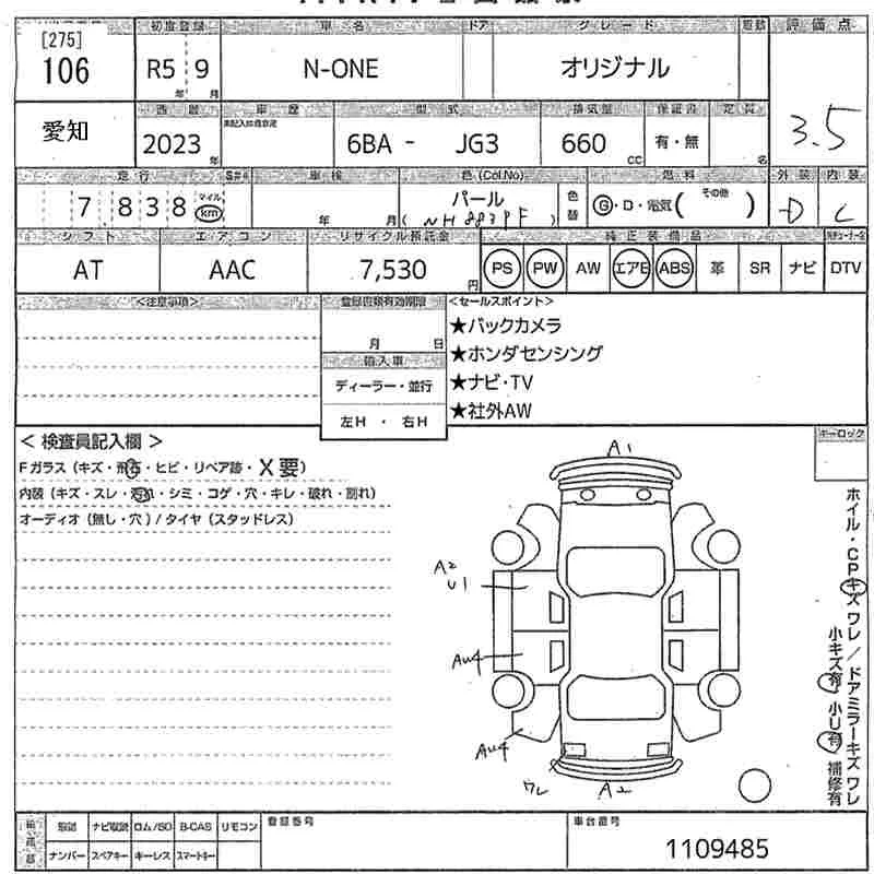 Honda N ONE с аукциона Японии MIRIVE Aichi лот № 106
