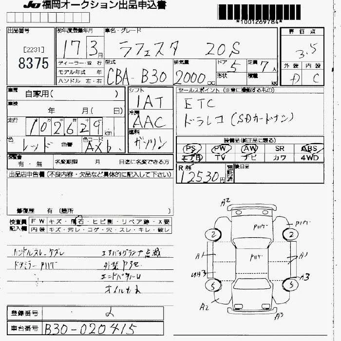 Nissan LAFESTA с аукциона Японии JU Fukuoka лот № 8375