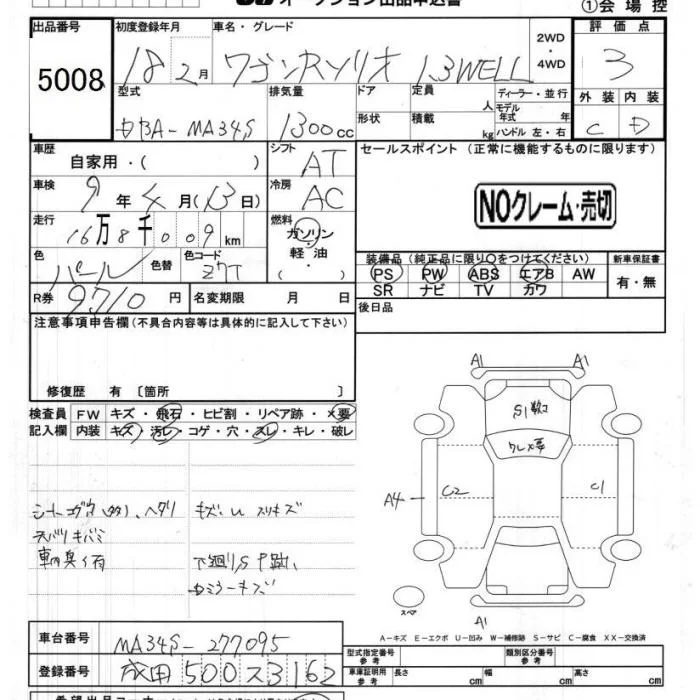 Suzuki WAGON R с аукциона Японии JU Chiba лот № 5008