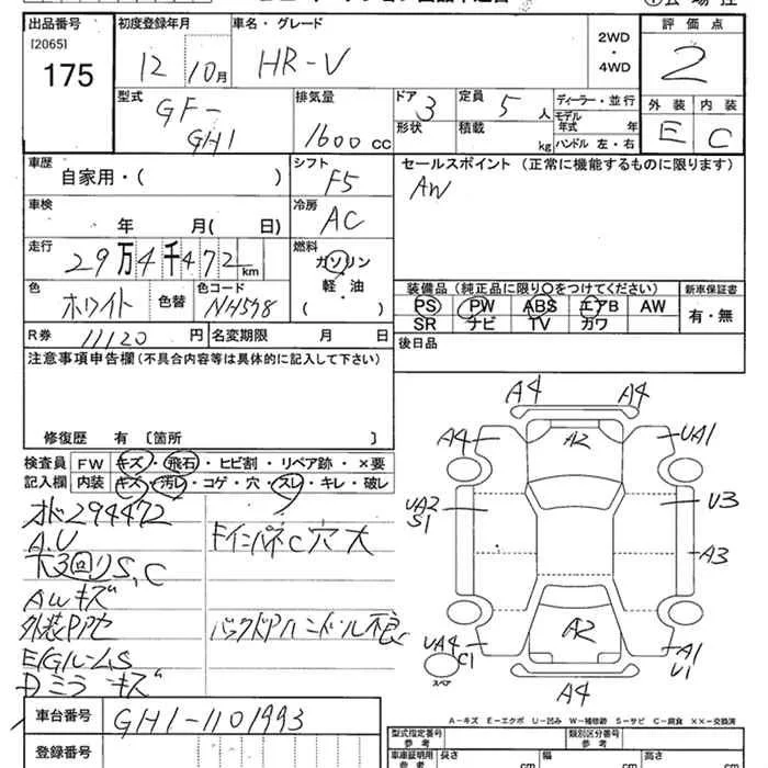 Honda HR-V с аукциона Японии JU Niigata лот № 175