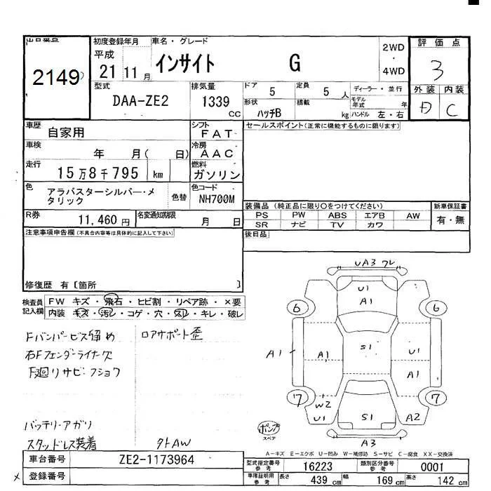 Honda INSIGHT с аукциона Японии JU Hokkaido лот № 2149
