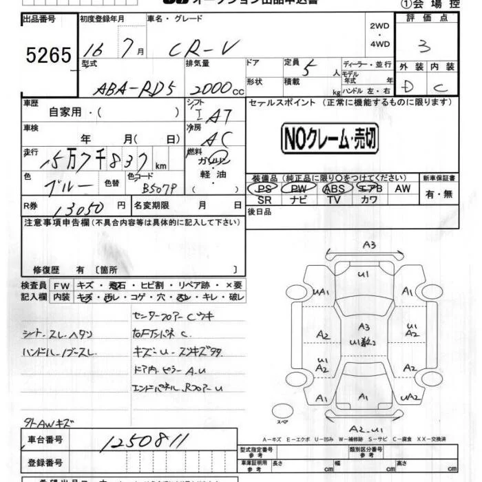 Honda CR-V с аукциона Японии JU Chiba лот № 5265
