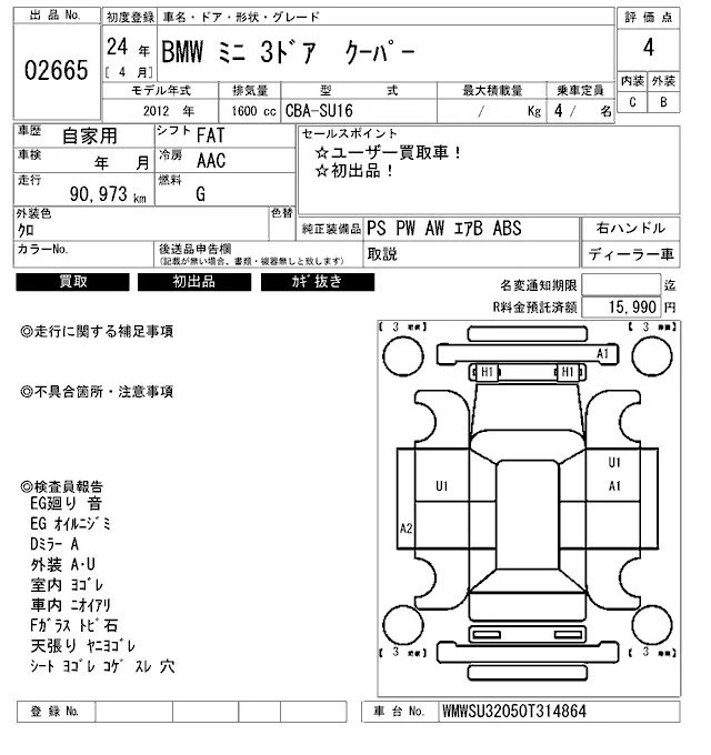 BMW MINI с аукциона Японии ARAI Bayside лот № 2665